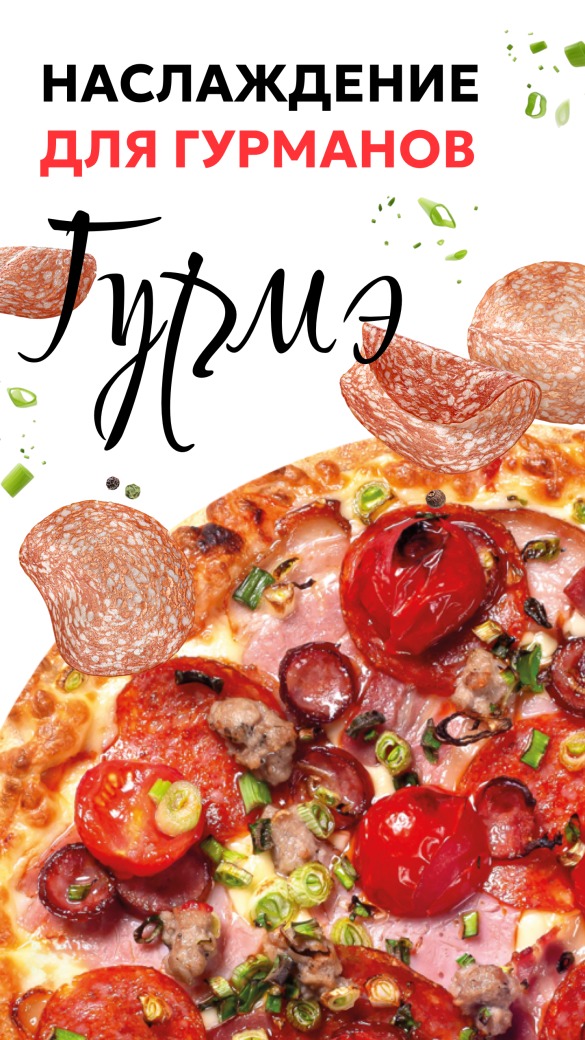 Сочная пицца с тремя видами мяса: пикантной пепперони, нежной ветчиной и ароматной грудинкой, дополненная болгарским перцем и острым соусом чили под тягучей шапкой моцареллы.